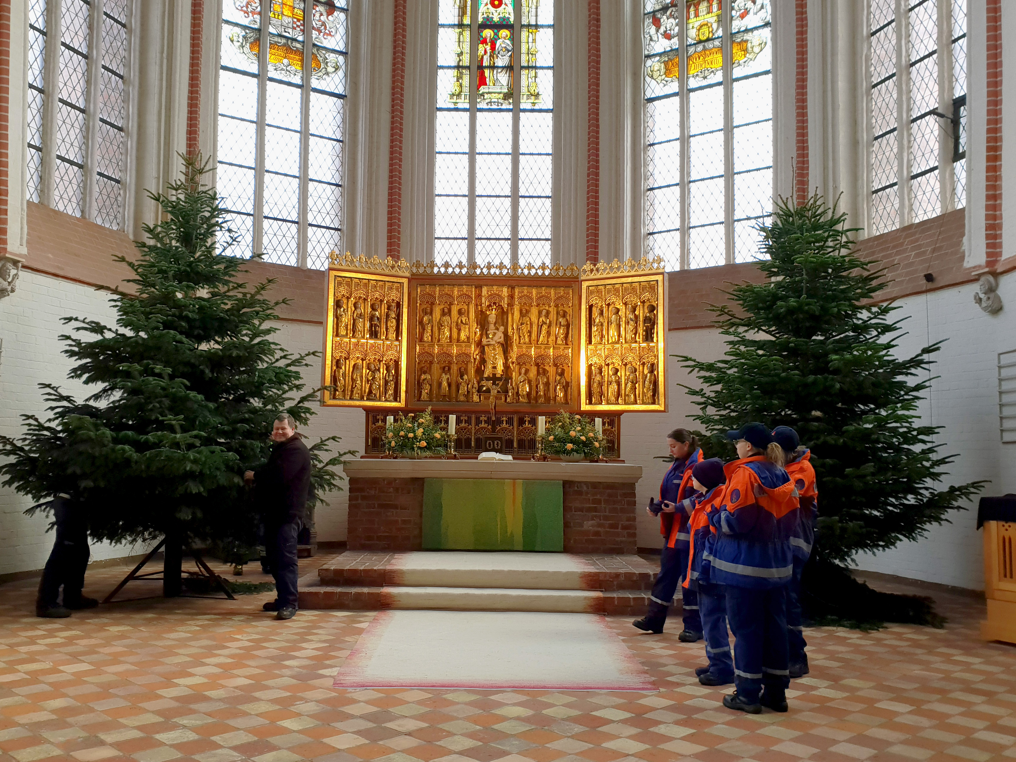 Die Jugendwartin Sabine Schulz konnte sich beim 4. Tannenbaumverbrennen vor Anmeldungen kaum retten und verzeichnete einen Anstieg der Anmeldungen vom letzten Jahr von ca. 30%. Nicht nur aus vielen Privathäusern, auch die beiden vier Meter großen Bäume, die das Innere vom Dom zu Bardowick schmückten, durften die Jugendlichen und Betreuer mit vereinten Kräften abholen. Für jeden Baum gab es als Dankeschön einen Verzehrgutschein, welcher am Abend eingelöst werden konnte.