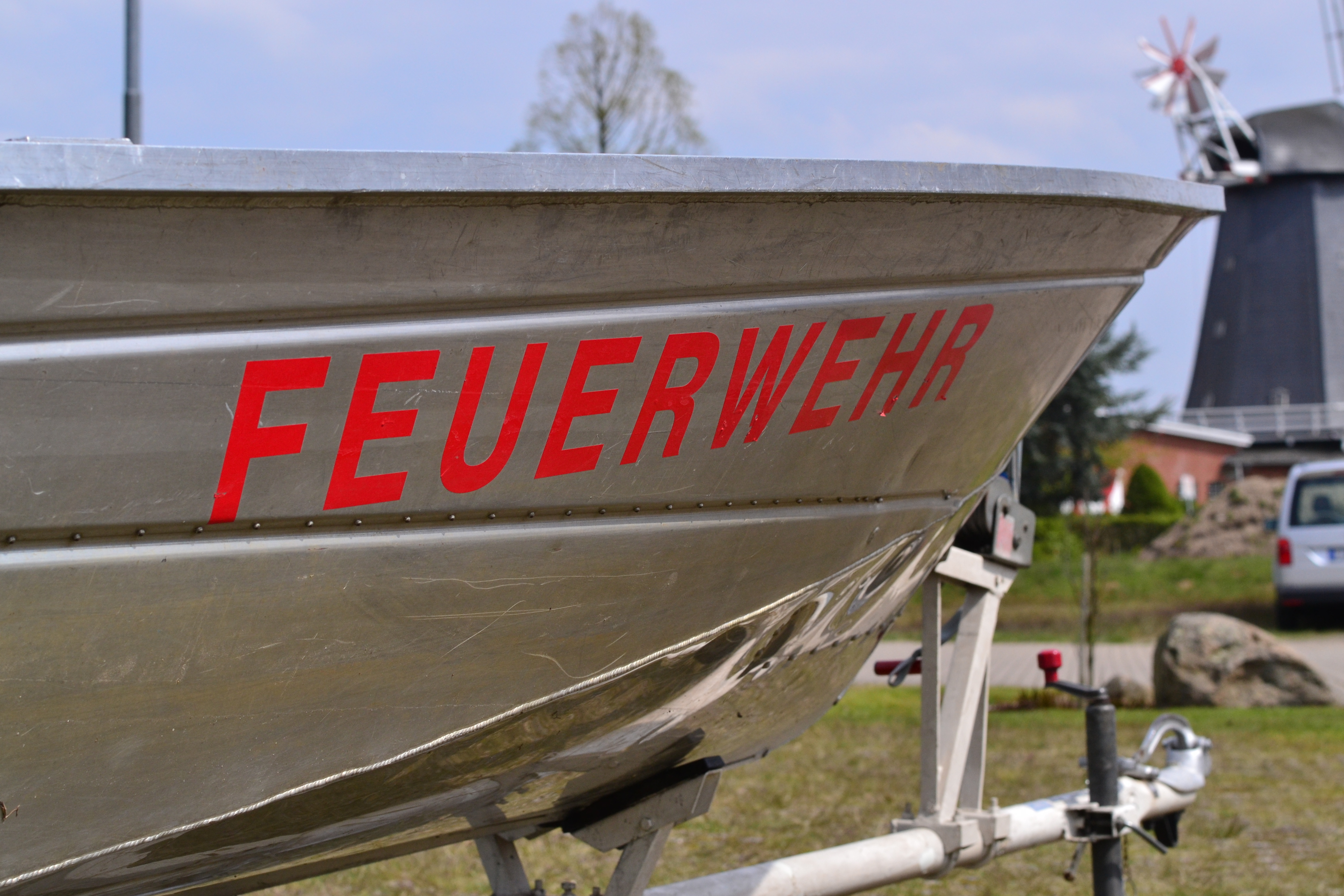 Leichtes Aluminiumboot zur Personenrettung im Wasser und dem Ausbringen von Ölsperren.